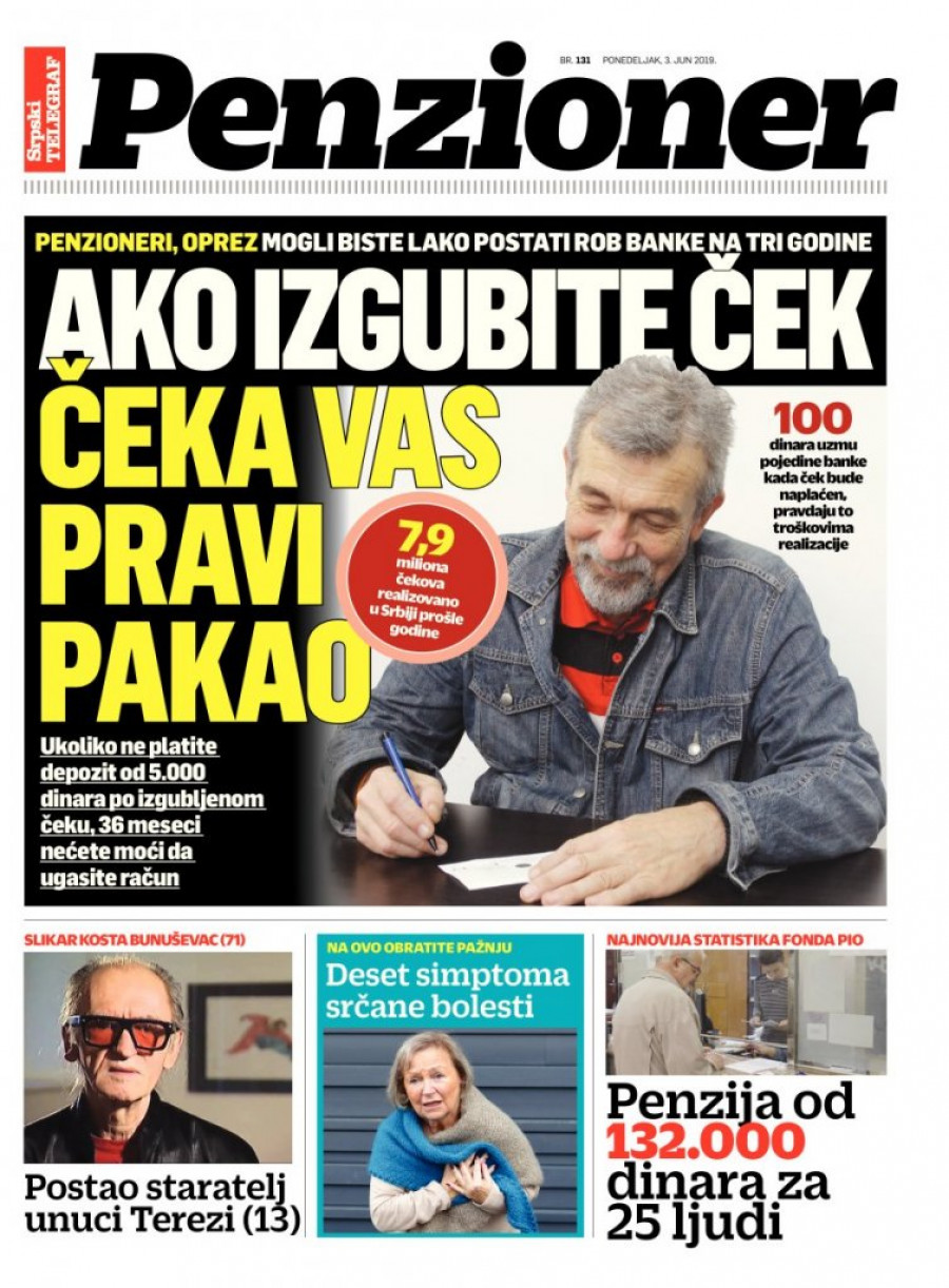 Poklanjamo magazin "Penzioner": Oprez! Ko izgubi ček postaje rob banaka