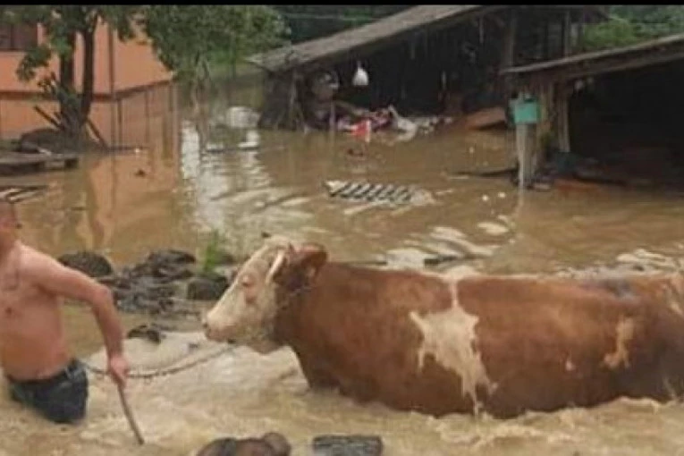 Foto: facebook.com/NOVA NADAPa tako i ovaj seljak iz sela Adrani, iz okoline Kraljeva, spasava svoje dve hraniteljke od vode koja nadire.