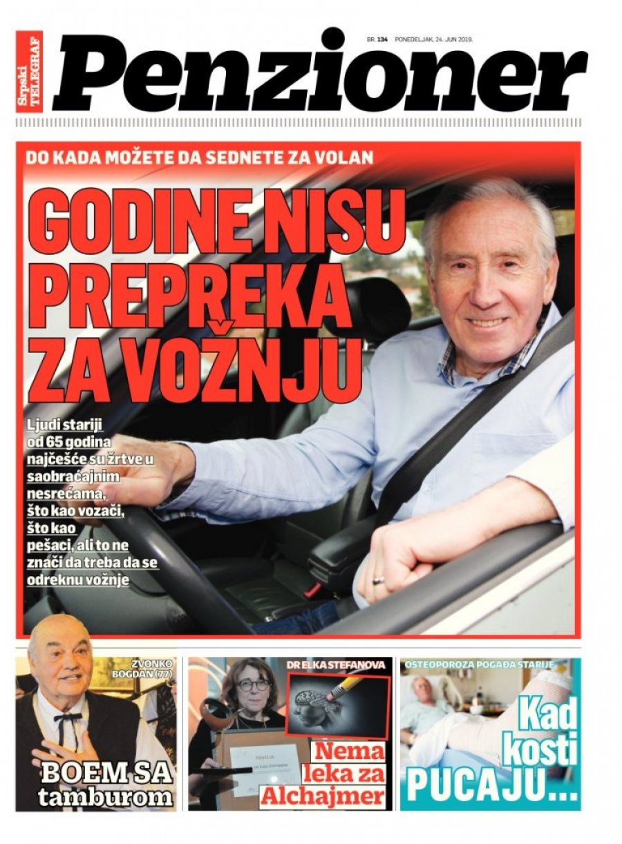Svakog ponedeljka u okviru "Srpskog telegrafa" izlazi dodatak "Penzioner" koji piše o temama koj se tiču najstarijih sugrađana. Ove nedelje bavimo se najviše time da li su godine prepreka za vožnju.