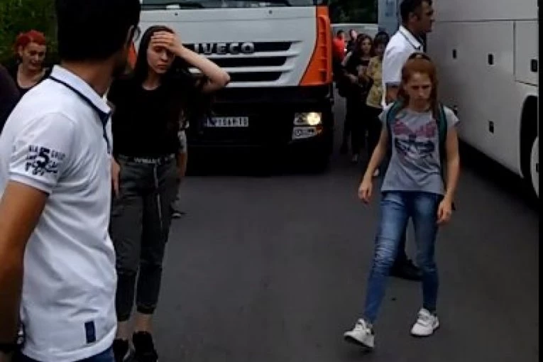 Putnici međugradskog autobusa su izašli i u neverici gledali u mini krater i komentarisali "kvalitet" betona.