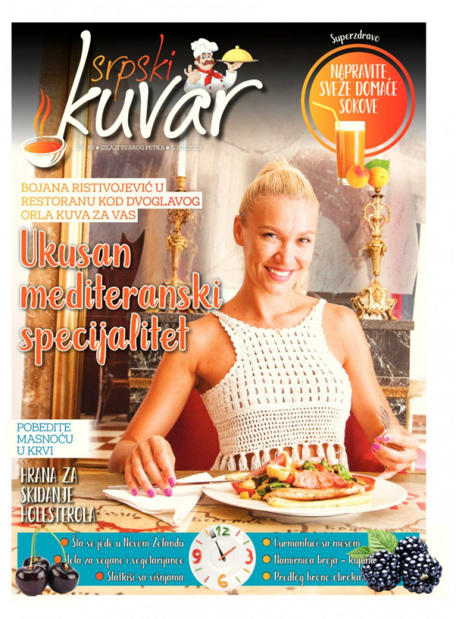 Voditeljka Bojana Ristivojević kaže da zna da spremi gotovo sva tradicionalna jela - sarmice u zelju, obične sarme, musaku, punjene paprike, za koje kaže da je ekspert, pa je čak osmislila i svoj recept, koji je oduševio prijatelje i ukućane. U našem dodatku "Srpki kuvar" saznaćete šta sve ona voli da klopa, kao i koji mediteranski specijalitet je otkrila svim čitaocima.