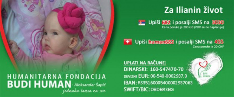 Humanitarna fondacija "Budi human" prikuplja novčana sredstva za Ilianu Salonikios Kostić (2018).