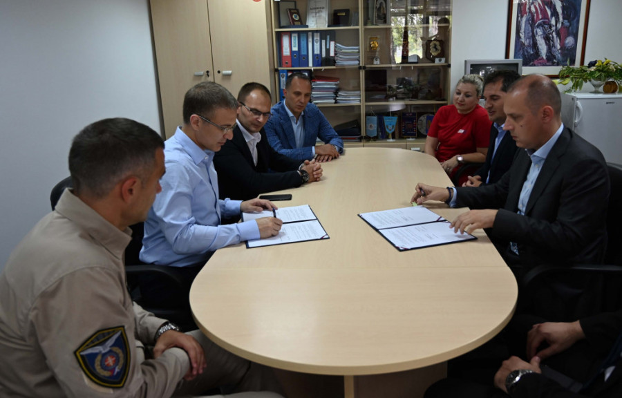 Foto: MUP Republike SrbijeStefanović i Lončar tom prilikom potpisali su Ugovor o poslovno-tehničkoj saradnji između dva ministarstva koji definiše zajedničko delovanje pripadnika Helikopterske jedinice i Hitne pomoći u situacijama kada je neophodna upotreba helikoptera za prevoz pacijenata.