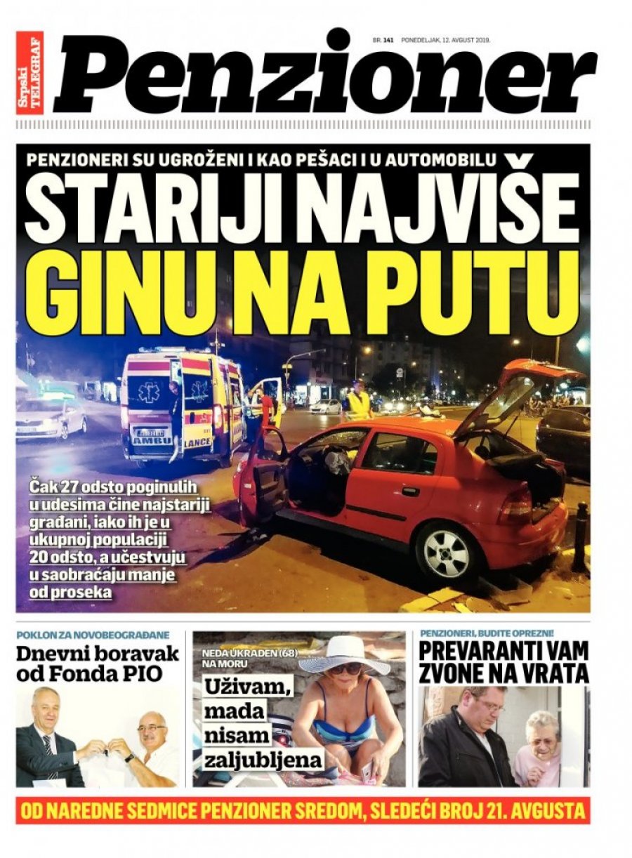 Više o ovoj crnoj statistici, ali i o mnogim drugim temama interesantnim pripadnicima trećeg doba, čitajte u dodatku "Penzioner" koji Srpski telegraf poklanja svakog ponedeljka svojim čitaocima!