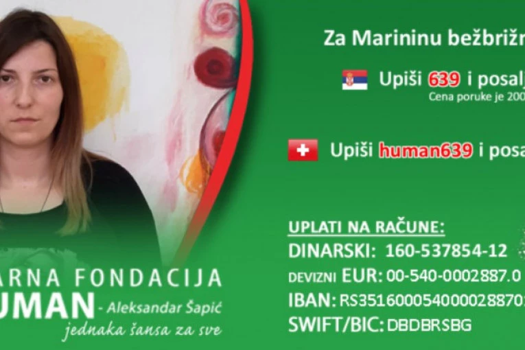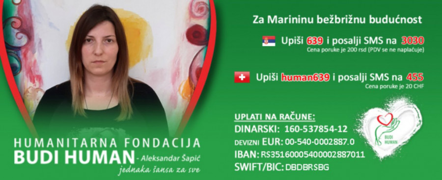 Humanitarna fondacija "Budi human" prikuplja novčana sredstva za lečenje Marine Bogosavljević (34).