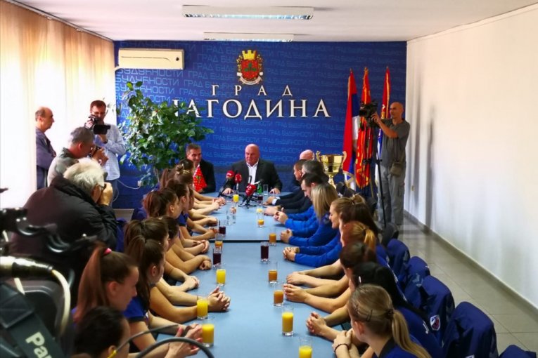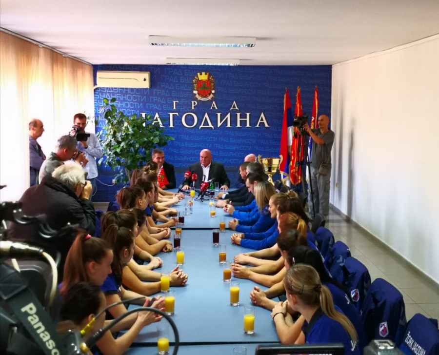 Foto: SO Jagodina- Hvala vam što ste dali sve od sebe na terenu, jer kada daš sve od sebe u sportu onda možeš i da očekuješ rezultat. Sport je danas najbolji ambasador, a vi ste upravo najbolji ambasador i grada Jagodine i Republike Srbije. Važno je reći da u Ženskom rukometnom klubu Jagodina igraju sve domaće igračice, uključujući njih nekoliko iz Crne Gore, koju ja ne smatram za inostranstvo - izjavio je predsednik Skupštine grada Jagodine Dragan Marković Palma obraćajući se igračicama, stručnom štabu i rukovodstvu Ženskog rukometnog kluba Jagodina, na prijemu povodom osvajanja Super kupa Srbije u Skupštini grada Jagodine.