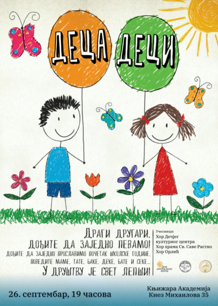 Hor "Rastko" pri Hramu Svetog Save nastupiće u četvrtak, 26. septembra u 19 časova na koncertu "Deca deci" koji organizuje knjižara Akademija (Knez Mihailova 35, SANU) povodom nove školske godine. Ulaz je besplatan,a a na koncertu će, pored hora "Rastko" učestvovati i hor Dečijeg kulturnog centra Beograd i hor "Orlić".
