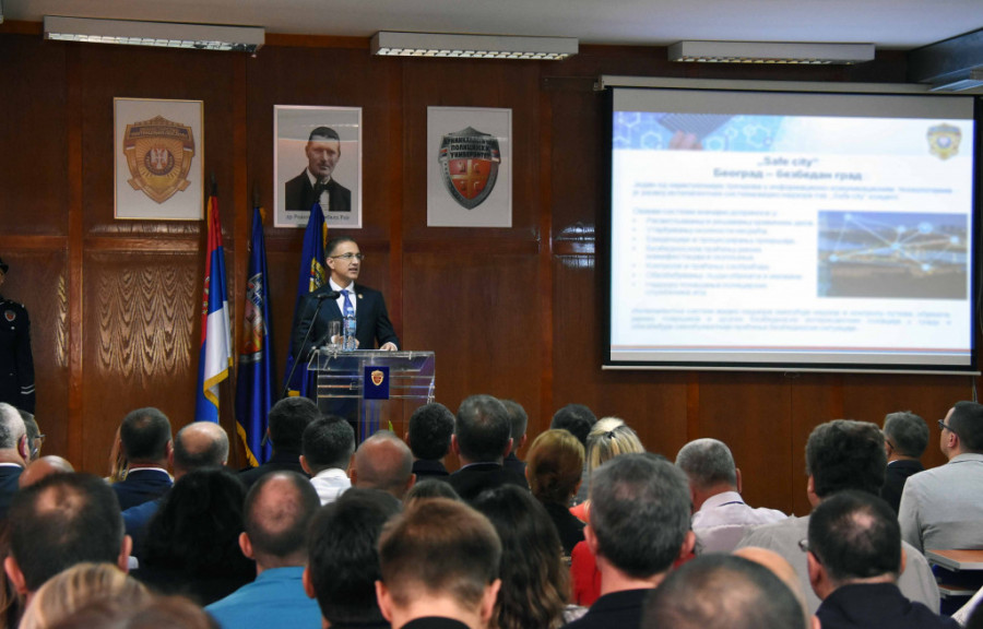 Foto: MUP SrbijeStefanović, koji je na Kriminalističko-policijskom univerzitetu povodom početka školske godine održao uvodno predavanje na temu "Savremene tehnologije u razvoju Ministarstva unutrašnjih poslova", istakao je da uvođenje novih modernih sistema znači manje kriminala na ulicama Srbije, veću prevenciju, bolju zaštitu naše dece od narkotika, sigurnost u saobraćaju i veći stepen bezbednosti.