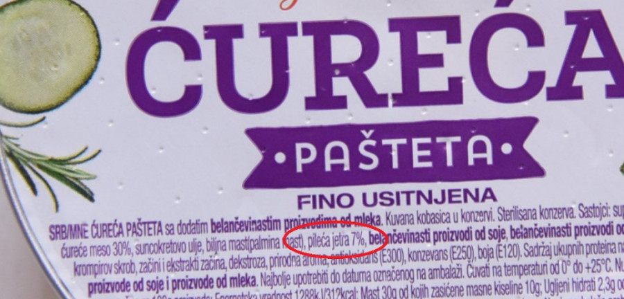 - Kompanija je dužna, po osnovu Pravilnika o deklarisanju, označavanju i reklamiranju hrane, da navede sve sastojke proizvoda po opadajućim vrednostima. Proizvođač navodi da se u pilećoj pašteti nalazi 34 posto MSM i sedam piletine, ali šta je sa ostalih 60 odsto sastojaka? Naime, u tih 2/3 proizvoda može da bude upravo sastojak koji je zasnovan na soji, pa bi se onda namaz zvao pašteta od soje ili od mleka sa dodacima piletine, na primer - precizirao je naš sagovornik.