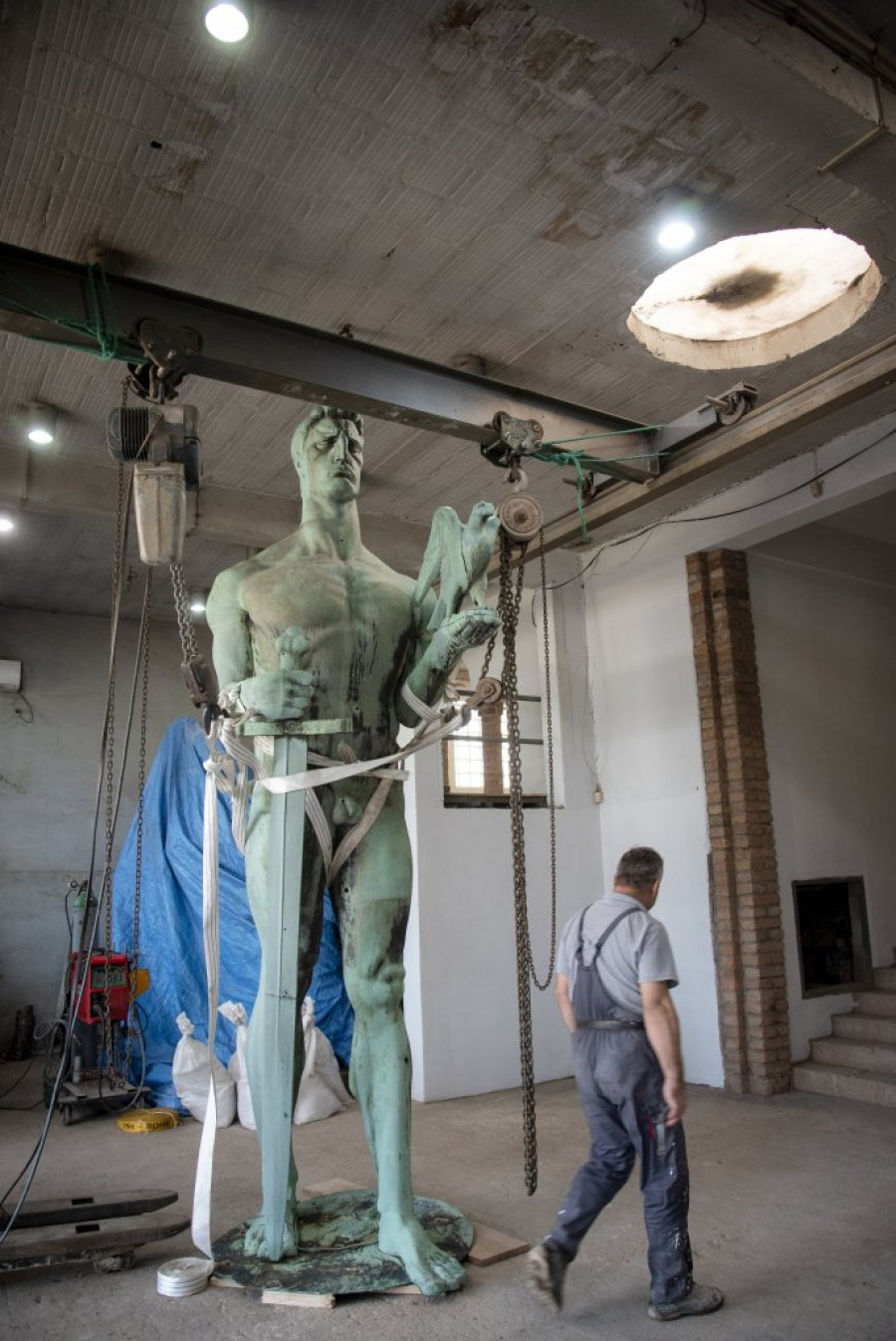 Zbog oštećenja mač će biti izvađen iz ležišta, sređen i vraćen na svoje mesto. Poseban izazov je restauracija orla u ruci Pobednika, koji sada leži u rasklimanom ležištu, pa će biti spojen odgovarajućim zavarom za šaku skulpture.