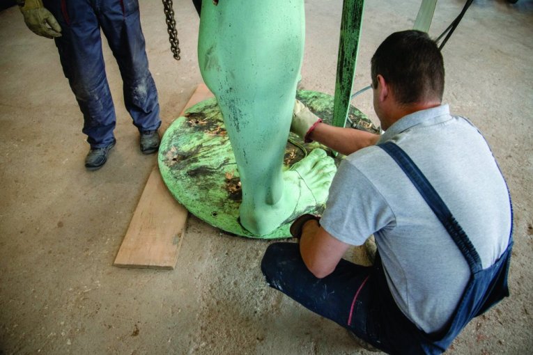 - Prvi korak će biti korišćenje sredstava za omekšavanje kako bi se uklonili udebljani slojevi do originalne površine patine, ali nikako do ogoljene površine metala. Kako bi se usporio prirodni proces patiniranja, izvršićemo površinsku hemijsku obradu koja zaustavlja brzi prodor hemikalija iz atmosfere - kaže Kuzmanović.