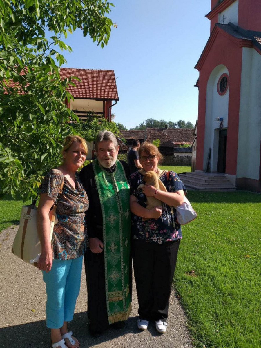 Foto: Privatna arhivaNešto kasnije ću se vratiti na samu službu. Želela sam samo da pokušam da vam dočaram tu divotu - životinje i ljudi zajedno na službi u crkvi. Baš onako kako bi i trebalo da bude. Tu je bilo još nekoliko pasa koje su vernici doveli sa sobom i tokom dva sata, koliko je trajalo jeleosvećenje, niko od njih se nije čuo, a kamoli neku štetu napravio. Mirno su sedeli, ležali tik do svojih ljudskih prijatelja. Jedino je slepa maca Stefan, kojoj su i prednje šapice deformisane, bila u rukama. Savršeno mirna i vesela...