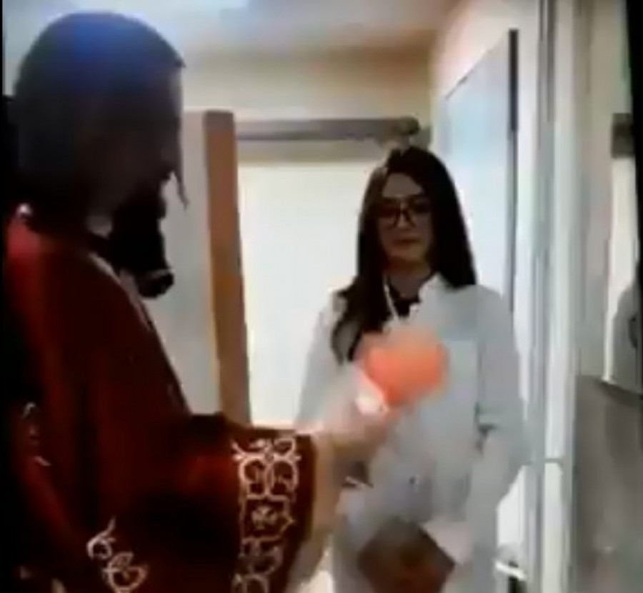 Foto: twitter.com/Pavle BihaliPredstava koju su spremili i snimili prikazuje mladića i devojku koji lutkom, koja imitira dete, mlate gore-dole i izvode "crkveni obred krštenja".