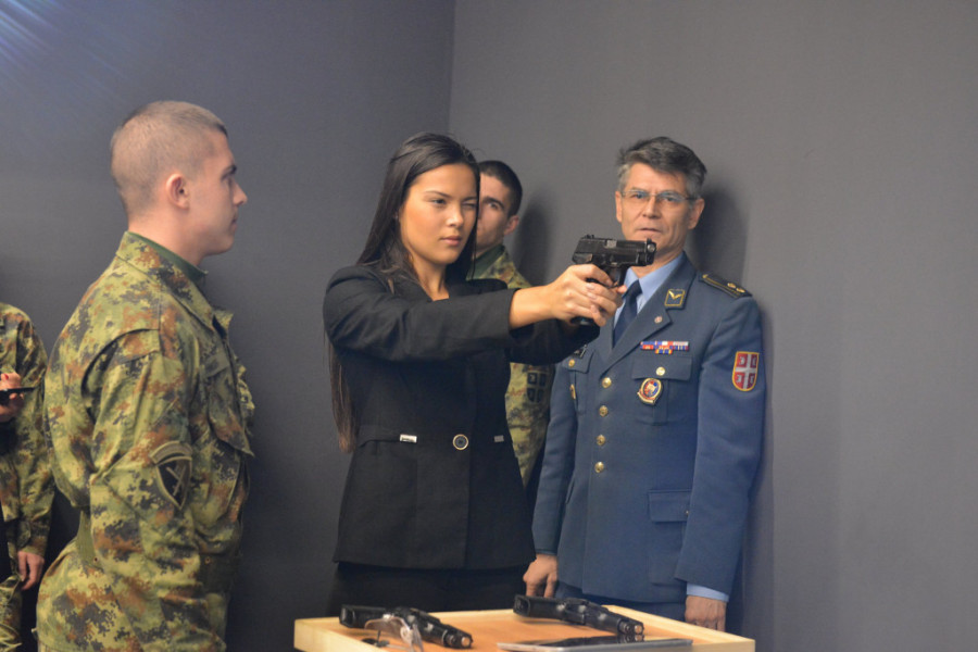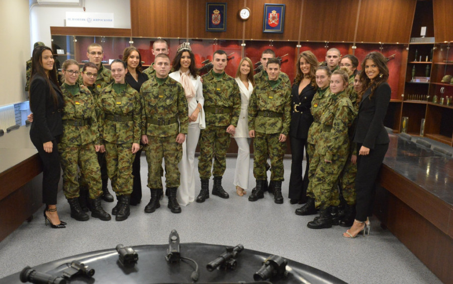 Foto: mod.gov.rs- Od malena sam imala želju da upišem vojnu školu i bila bi mi velika čast da sam postala deo Vojske Srbije. Razgovarala sam danas sa kadetima o uslovima života i studiranja, mada sam već dosta informisana o tome. Iako sam upisala Elektrotehnički fakultet, možda za Vojnu akademiju nije kasno - zaključila je Mis eko Srbije.
