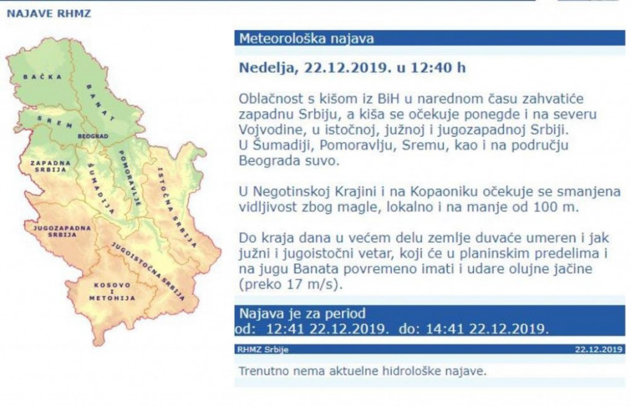 Foto: printscreen/hidmet.gov.rs