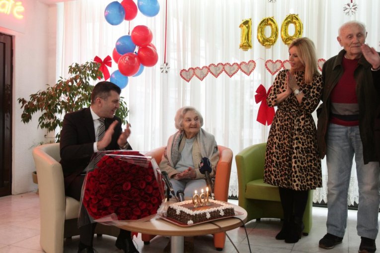 U Domu penzionera "Bežanijska kosa" danas je bila prava slavljenička atmosfera, a povod je 100. rođendan korisnice tog doma Ivanke Popović.