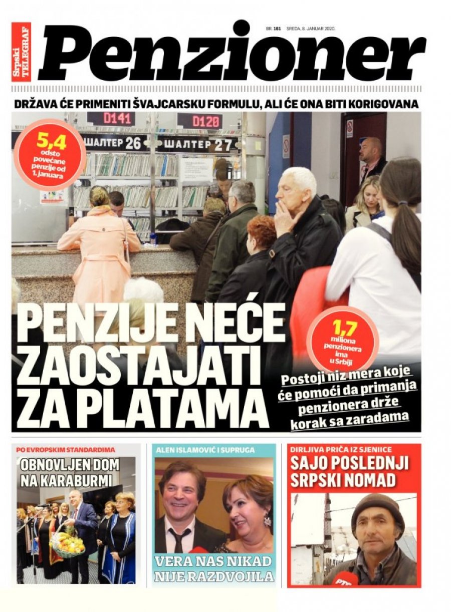 Kako žive naši penzioneri u Srbiji i sa čime se suočavaju svakodnevno pročitajte u dodatku Penzioner, koga dobijate na poklon svake srede uz štampano izdanje Srpskog telegrafa.