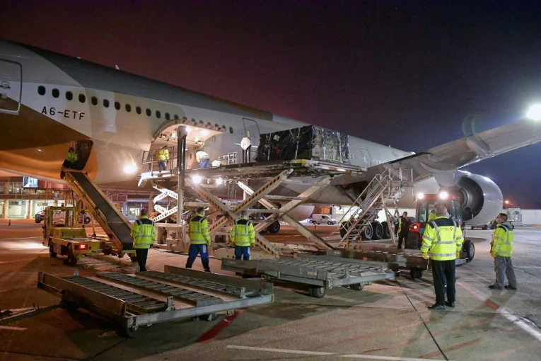 Iz Emirata je noćas dopremljeno 10 tona opreme: 13. 750 zaštitnih odela, 15. 000 bolničkih odela, 500. 000 rukavica, 30.000 zatite za cipele, 20. 000 maski i 6. 000 sanitizera.