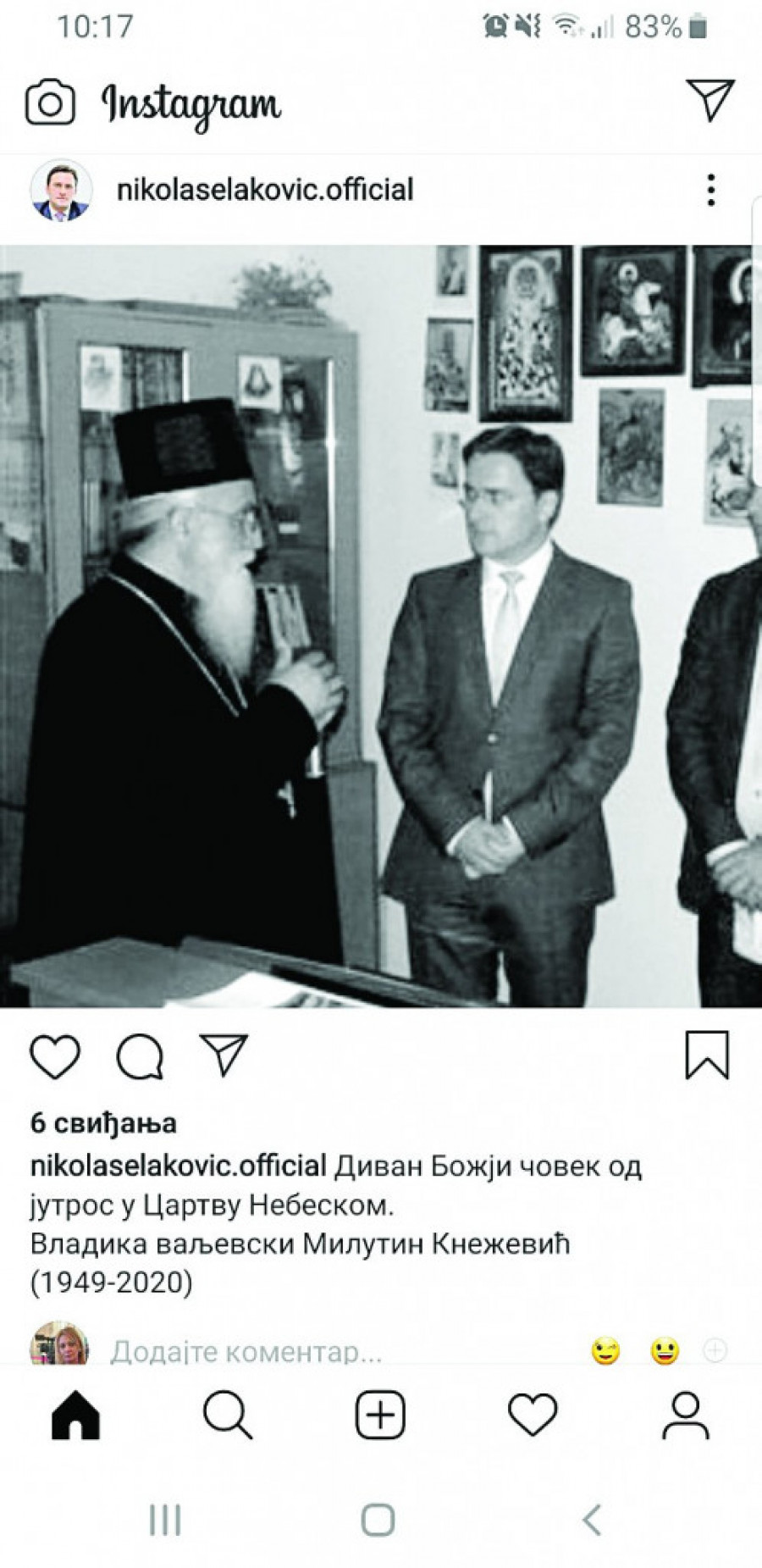 - Naš dobri vladika Milutin bio je zabrinut od prvog trenutka epidemije koronavirusa, videlo se da to više nije isti čovek. Stalno je ponavljao se on naživeo, do te mere je često izgovarao tu rečenicu da nam se svima sada čini da je u stvari slutio da će ga bolest odneti. Pričao je i da samo strepi za svoj narod. Velika je tuga, ne samo u valjevskom kraju.