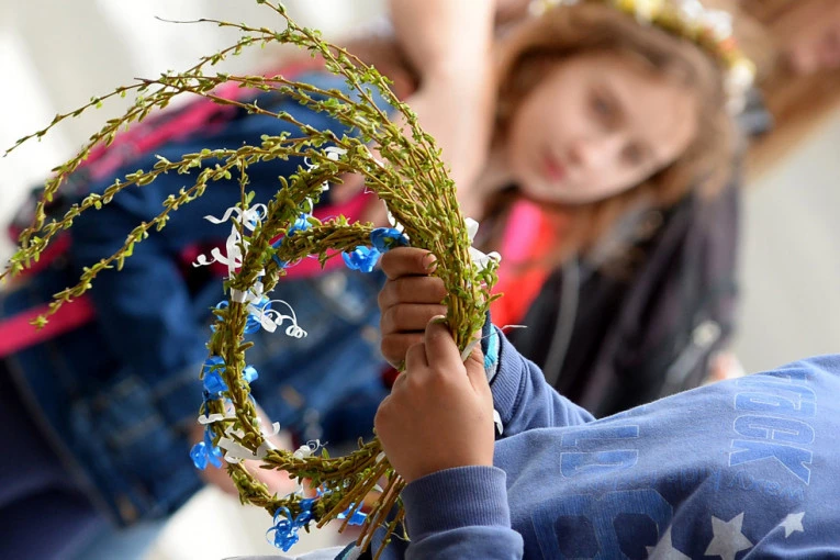 Foto: Tanjug/T. VALIČNa ovaj dan, običaj je da se oko struka nose grančice vrbe, a deca nose i zvončiće oko vrata, što simbolično predstavlja pozdrav Hristu, koji je ulazio u Jerusalim.