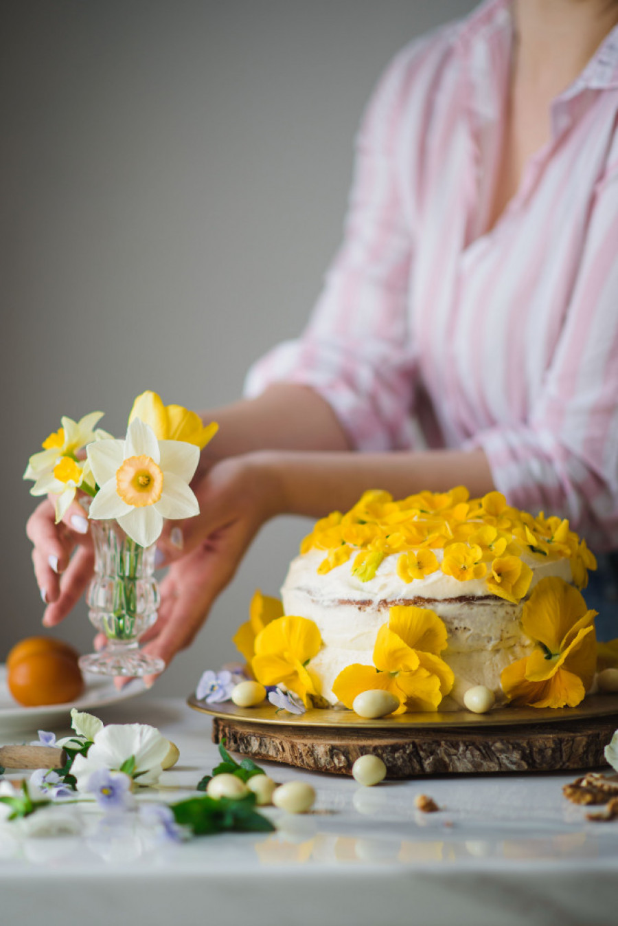 Na kraju sastavite tortu i ukrasite svežim cvetićima ili po želji.