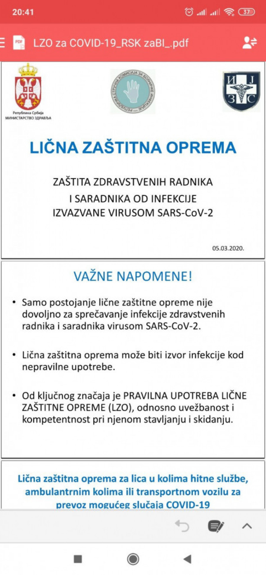 - Tvrdim da smo od prvog dana imali svu opremu uključujući kape, maske, naočare, vizire, hirurške, ali i epidemiološke maske. I oprema stavljena je svim zaposlenim na raspolaganje - konstatuje on.