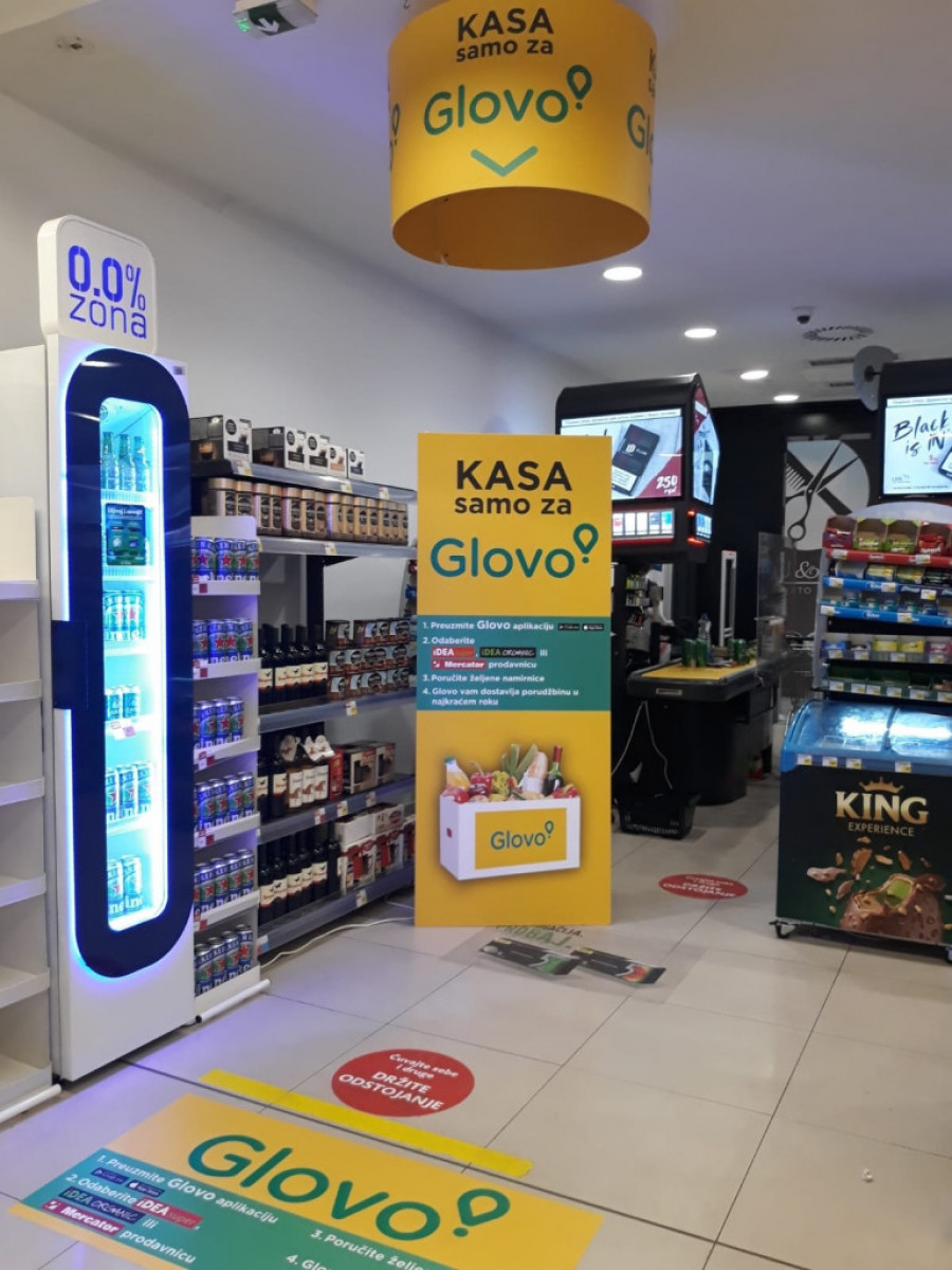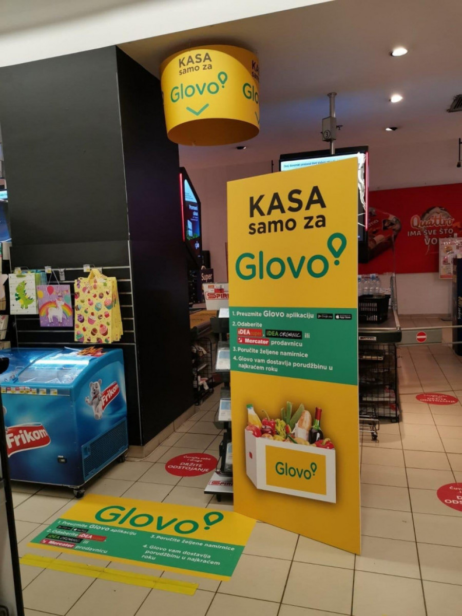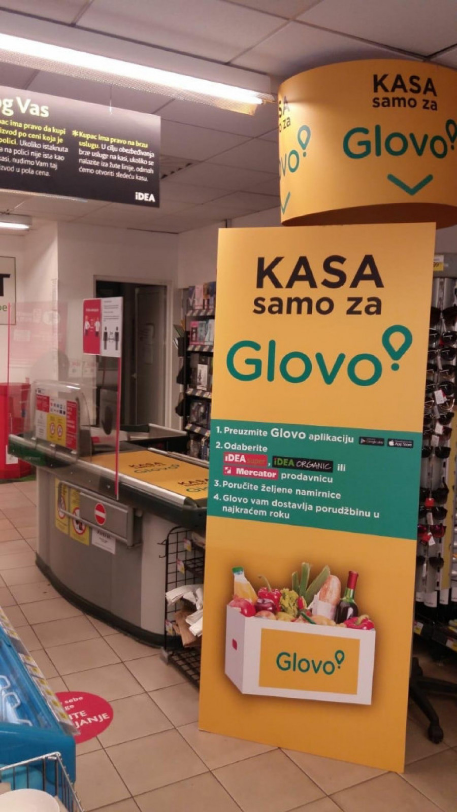 IDEA online, u saradnji sa Glovom, pokrenula je novu uslugu za potrošače, da nabavku namirnica obave od kuće, uz samo nekoliko klikova. Dovoljno je da kupac preuzme Glovo aplikaciju, odabere IDEA super, IDEA organic ili Mercator prodavnicu, poruči željene proizvode i Glovo će dostaviti porudžbinu na željenu adresu, u roku od 60 minuta.