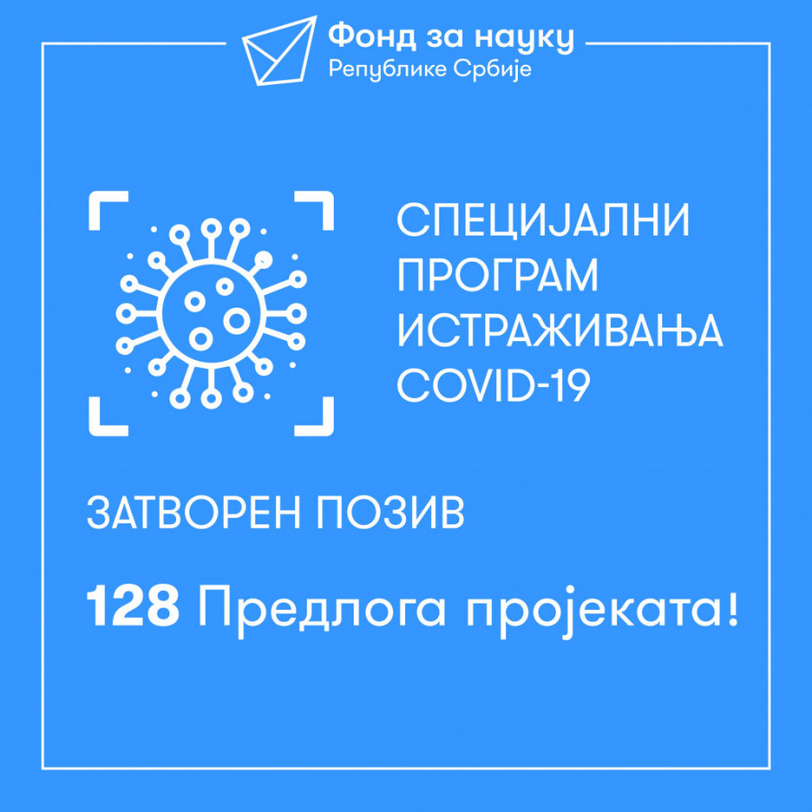 Javni poziv Fonda za nauku za podnošenje predloga naučnoistraživačkih projekata u okviru "Specijalnog programa istraživanja COVID-19" zvanično je zatvoren.