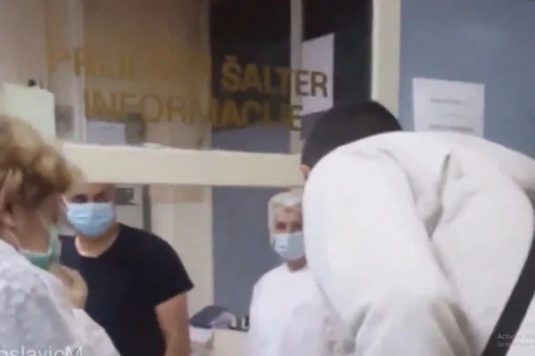 Fizički obračun sprečila je gospođa koja je plakala i molila sklopljenih ruku, a kako je izgledao verbalni napad na medicinare pogledajte u videu ispod.