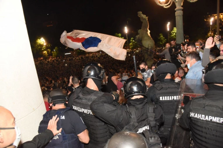 - U jednom momentu mi smo se nalazili na ulazu u Narodnu skupštinu i tada je grupa demonstranata na pripadnike policije počela da baca kamenice, flaše sa vodom, jaja... To je trajalo čitavih sat vremena, policija je stajala i trpela napade. Jedna grupa je uspela da uđe u parlament - kaže službenik policijske uprave Grada Beograda.