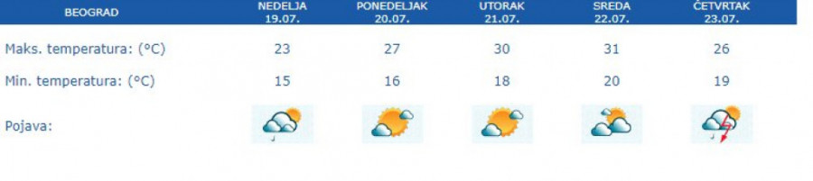 Foto: hidmet.gov.rs/printskrinU četvrtak ponovo pljuskovi u popodnevnim terminima, temperatura će pasti na 26 stepeni celzijusa.