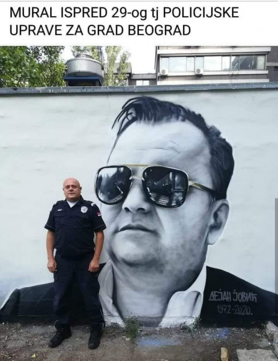 Dejan Jović, zamenik načelnika Odeljenja za suzbijanje krvnih i seksualnih delikata u beogradskoj policiji preminuo je 3. jula od posledica izazvanih koronavirusom, a sada je osvanuo njegov mural preko puta njegove nekadašnje kancelarije u PS 29. novembar.