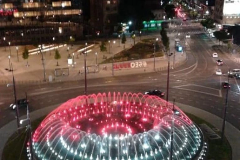 Bojama poljske zastave osvetljeni su Narodna skupština, Palata "Albanija", fontana na Slaviji...