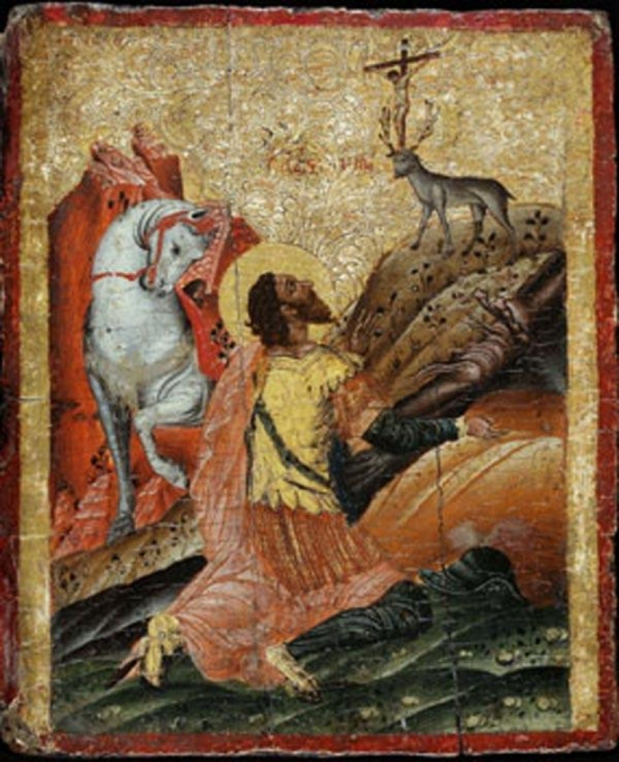 Jedna od njegovih velikih strasti bio je lov. Kada je jednom prilikom krenuo u šumu, predanje kaže da je ugledao jelena kome je među rogovima svetleo krst. Plakida mu je bez bojazni prišao i tada mu se prema priči javio Bog. Nakon toga, vojskovođa je otišao kod hrišćanskog sveštenika i krstio se zajedno sa ženom i oba sina dobivši ime Evstatije.
