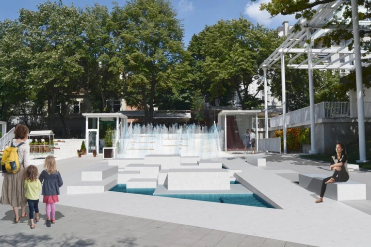 - Fontana će biti površine četrdeset kvadratnih metara i biće sastavljena od dve celine. Jedna je plato s vertikalnim mlazevima između kojih može i da se prolazi, a druga se sastoji od kamenih kubusa i pet malih bazena različitih dimenzija sa plitkom vodom - rekao je Vesić.
