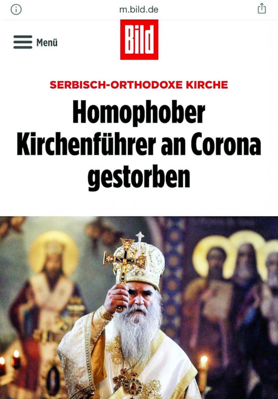 - Homofobni crkveni vođa umro od korone - osvanulo je u Bildu.