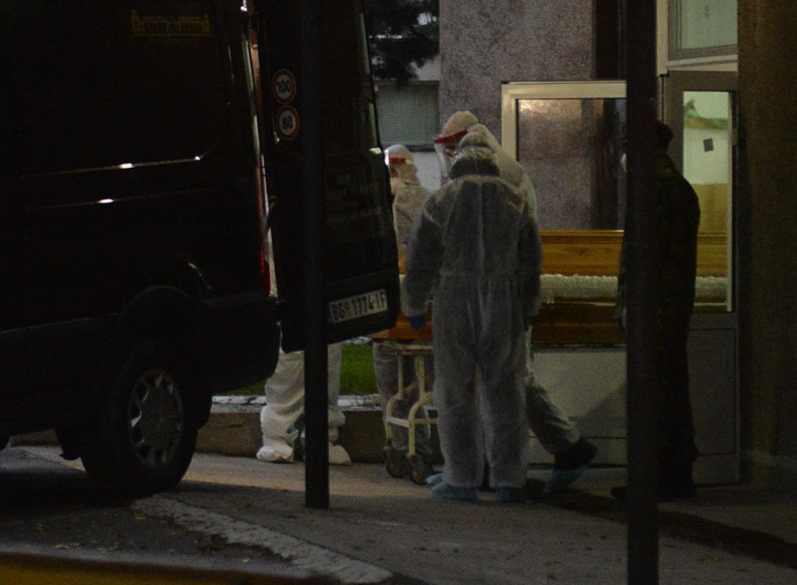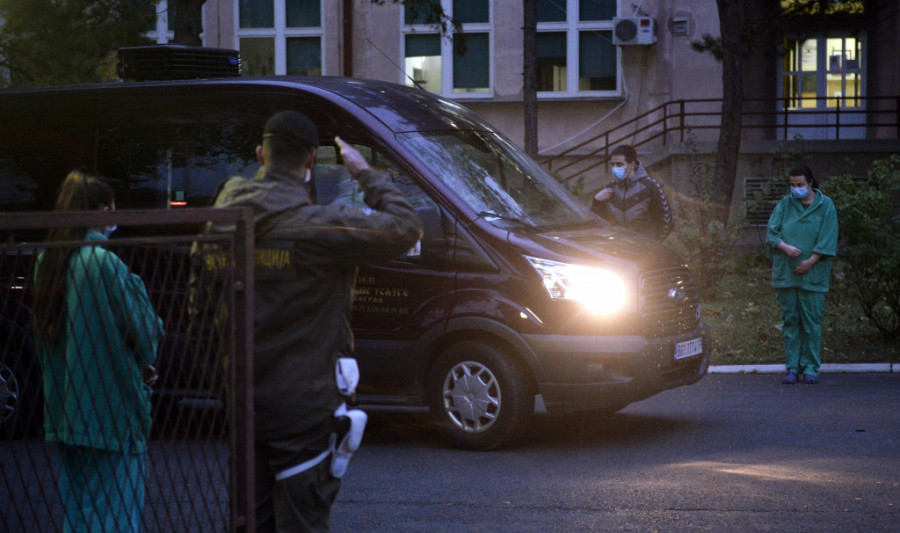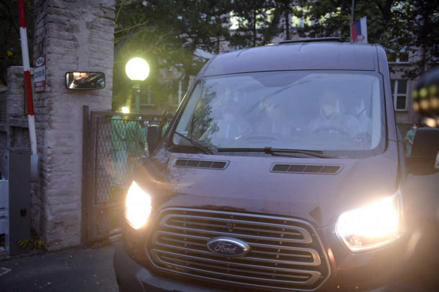 Sanduk sa telom upokojenog Irineja nešto posle 16 sati izneto je iz VMC Karaburma kako bi bilo prevezeno u Sabornu crkvu.