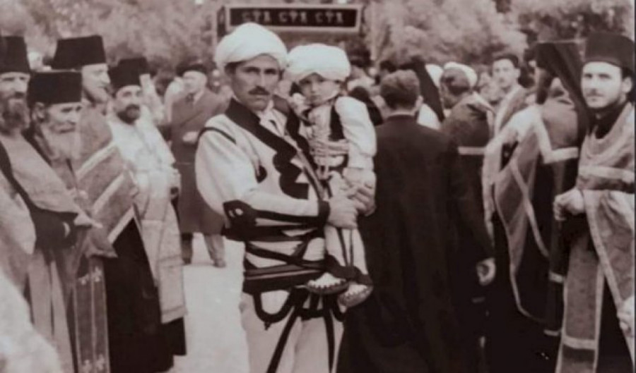 Na fotografiji je u prvom planu predstavnik albanske porodice sa svojim detetom u naručju, inače albanske porodice koja je vekovima čuvala patrijajršiju. Krajnje desno na fotografiji nalazi se i tada tridesetogodišnji jeromonah Irinej, budući patrijarh srpski.