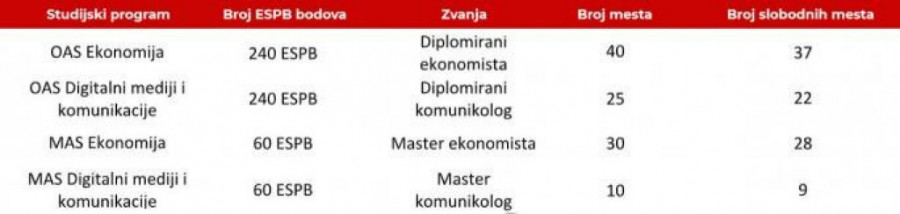 Najatraktivniji i najpopularniji studijski programi dostupni u Srbiji, a koje realizuje Fakultet društvenih nauka, na osnovnim akademskim studijama su: Digitalni mediji i komunikacije i Ekonomija. Takođe, postoje i master akademske studije na kojima se realizuju studijski programi: Ekonomija i Digitalni mediji i komunikacije.