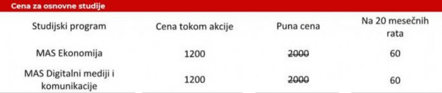 Ukoliko sad rezervišete svoje mesto na jednom od studijskih programa Fakulteta ostvarujete mogućnost da plaćate školarinu za osnovne studije na neverovatnih 60 mesečnih rata ili za master studije na 20 mesečnih rata.