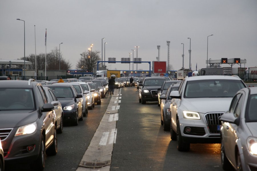 Kolone vozila danas čekaju na graničnom prelazu Batrovci da uđu u Srbiju iz Hrvatske.
