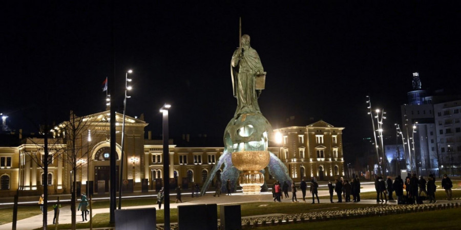 (FOTO) BIĆU SREĆAN AKO LJUDI ZAVOLE MOJ SPOMENIK: Vesić i Rukavišnjikov obišli spomenik Stefanu Nemanji