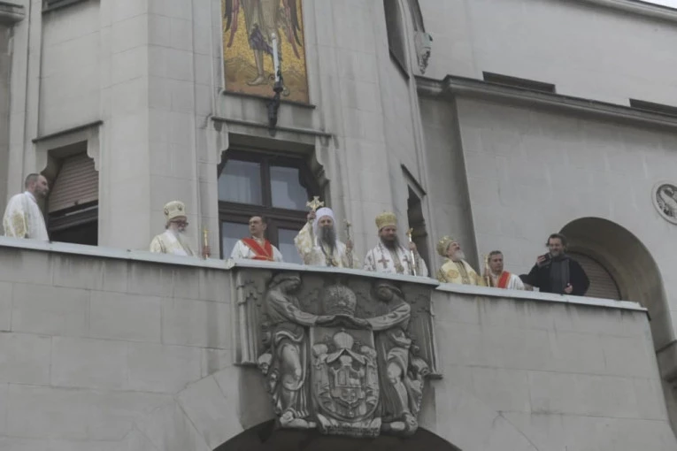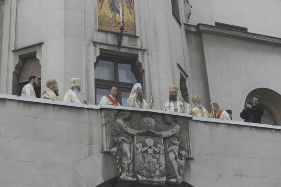 Patrijarh srpski Porfirije, nakon liturgije u Sabornoj crkvi na kojoj je ustoličen, pojavio se pred vernicima na balkonu Patrijaršije.