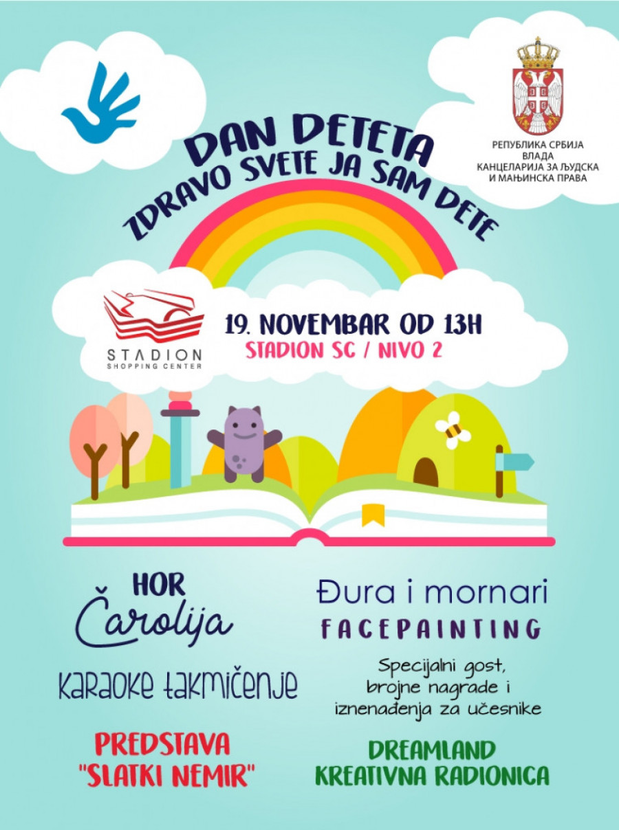 U okviru programa povodom obeležavanja Svetskog dana deteta biće upriličen zabavni program prilagođen deci - fejspejting, karaoke takmičenje, likovna radionica, druženje sa maskotama itd.