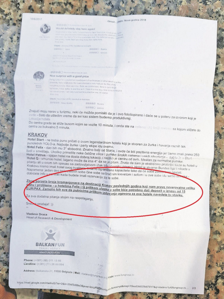 Foto: instagram.com/vladimirdracaDokument do koga je došao Srpski telegraf uputio je menadžer ove agencije Vladimir Drača, a povod da putnike oslovi ovakvim imenom jeste to što, kako se navodi, "kromanjonci prave neverovatno veliku štetu i probleme u hotelima, pa im se pre ulaska u sobu mora uzeti depozit od 15 evra".