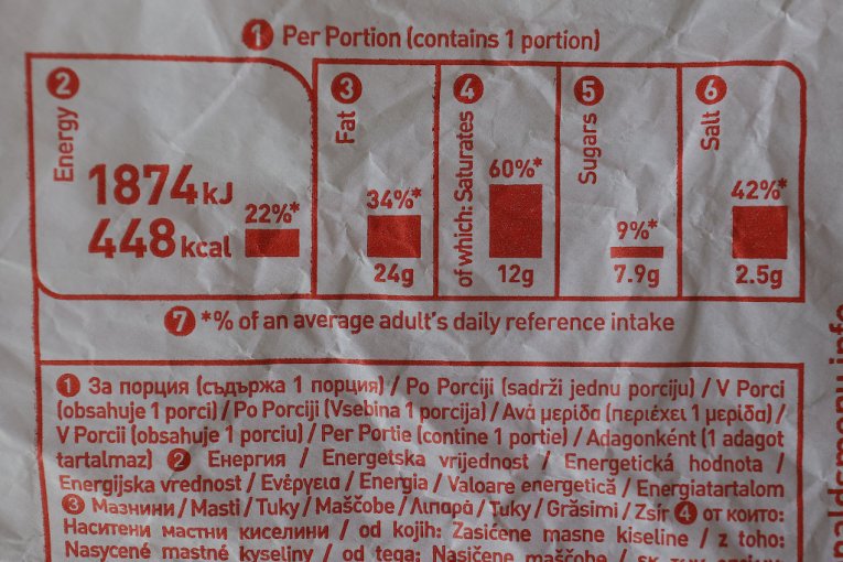 "Mekdonalds", istini za volju, nije prekršio nijedan propis jer u pogledu deklaracija ispunjava zakonsku normu i na papiru kojim je obmotan već pomenuti dupli čizburger (ili pomfrit, koji smo kupili s njim) piše koliki je procenat svega pomenutog. Ako bismo da zamerimo, slova i brojke (nutritivne vrednosti) svakako su ispisani toliko sitnim fontom da ih malo ko uopšte čita, ali...