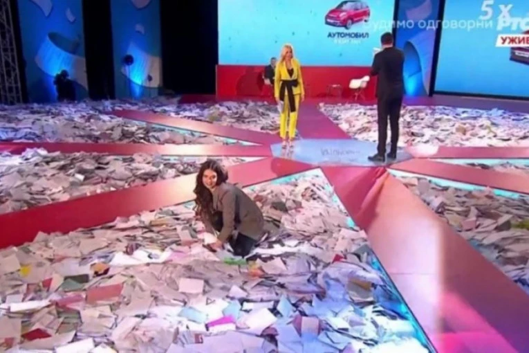 Foto: PrintscreenKoliko je bilo veliko interesovanje građana za nagradnu igru "Uzmi račun i pobedi" govori i podatak da se večeras u bazenu studija RTS našlo skoro 12 miliona koverata, čime je oboren rekord.