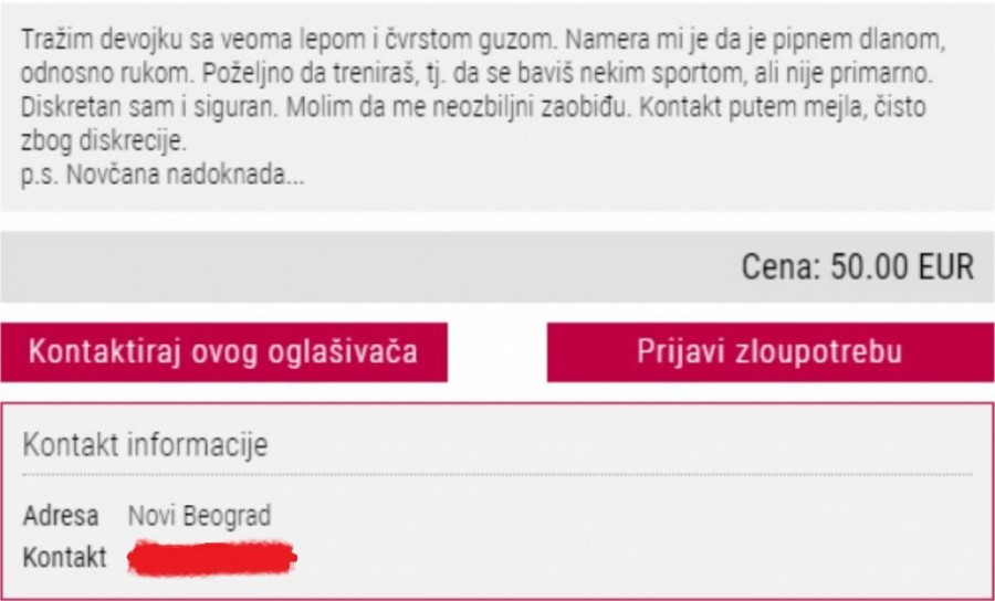 (FOTO) OGLAS KOJI JE OSVOJIO SRBIJU: Manijak traži GUZE ZA PIPANJE, opisao kakva je NAJPOŽELJNIJA, a zna se i cena