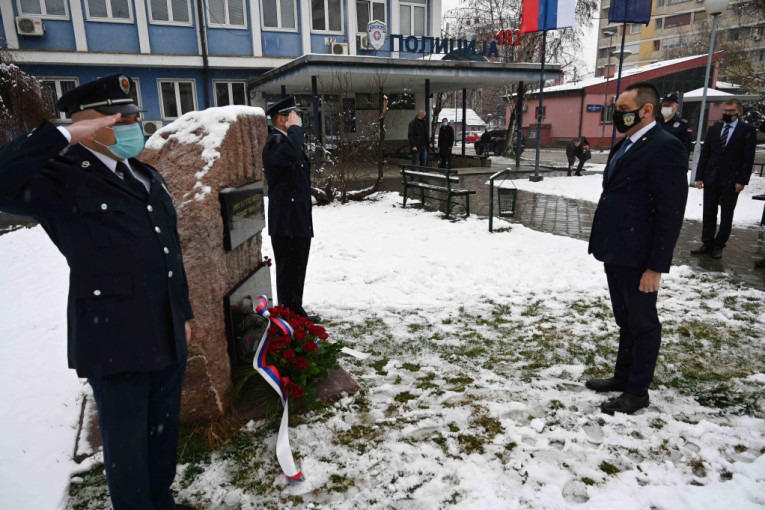 Ministar Vulin u Policijskoj upravi Zaječar položio je cveće na spomen-obeležje poginulim pripadnicima ove uprave.