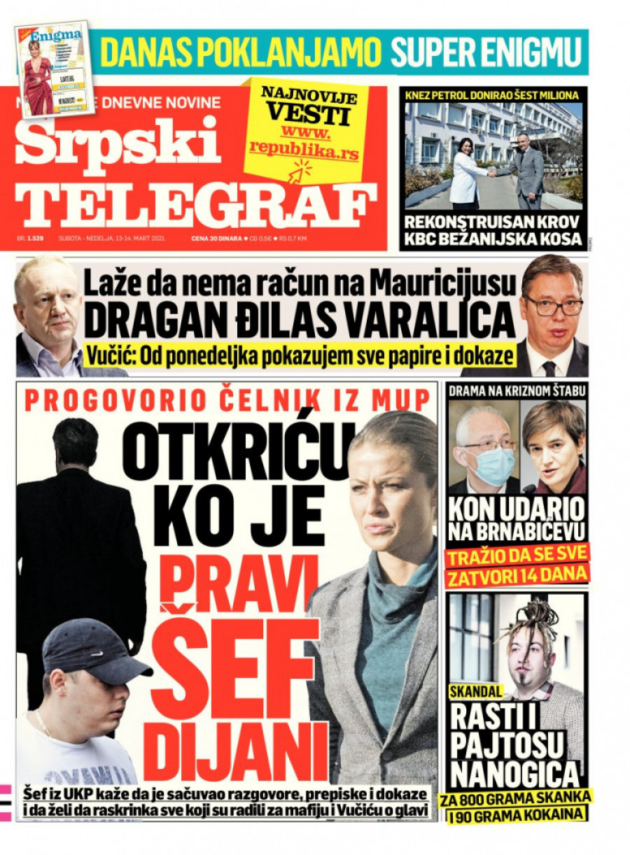 Foto: TanjugSrpski telegraf u štampanom izdanju za 13. mart donosi pregršt važnih i interesantnih priča.